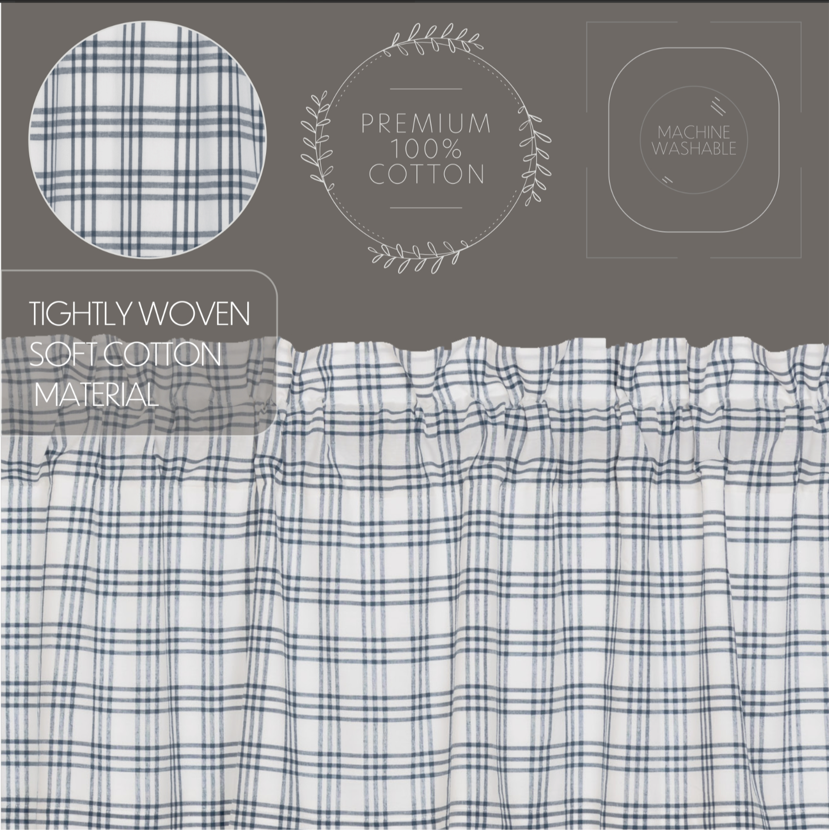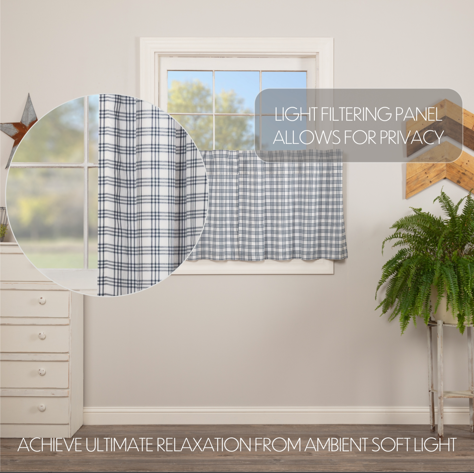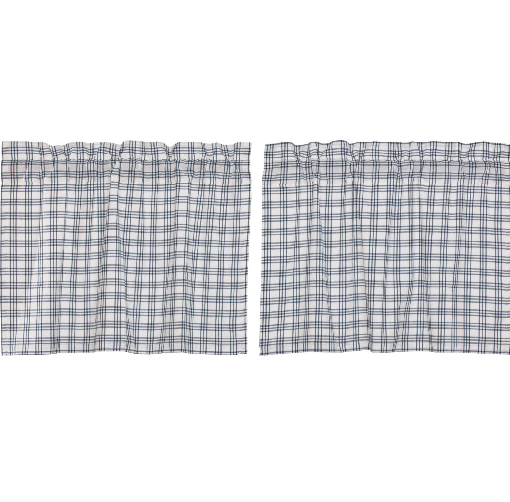 Create the perfectly charming country window of your dreams with these 24x36 inch tier-style curtains. Featuring denim blue and soft white plaid, the Sawyer Mill Blue Plaid Tier Set provides just the right balance of privacy and sunshine. Pair with a matching valance or prairie swag for a fully decorated look or alone for a simple pop of color and character. Also known as cafe or bistro curtains, these are a particularly good fit for decorating farmhouse kitchens, laundry rooms, and small bathroom windows.